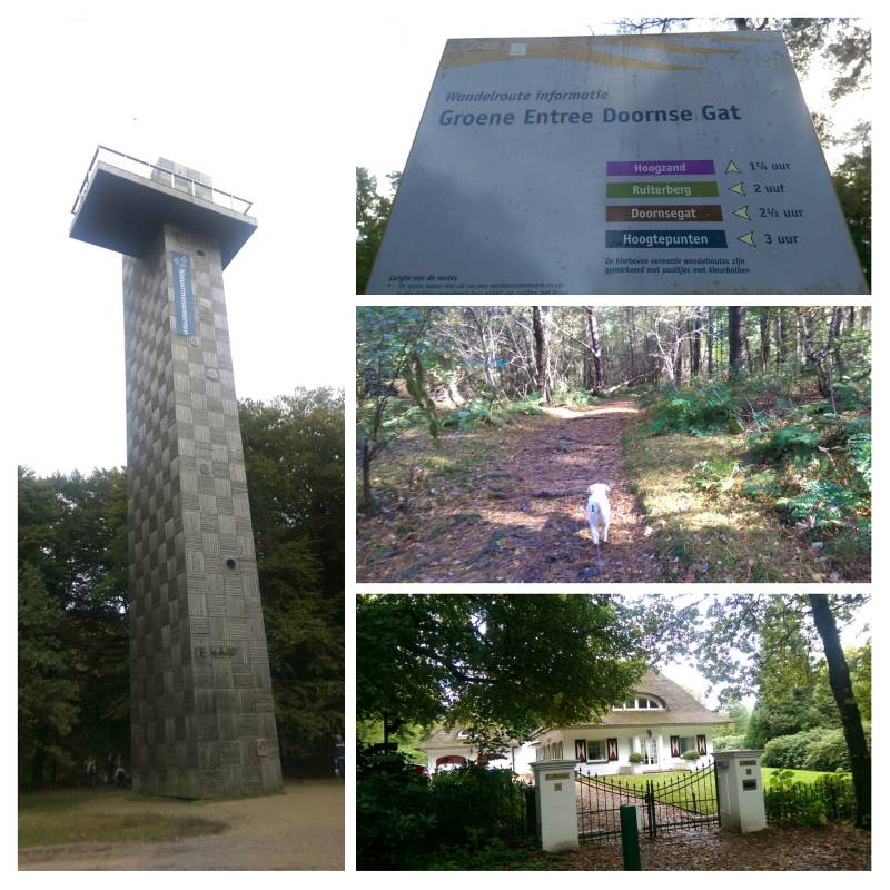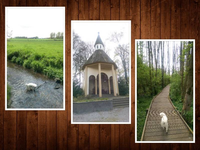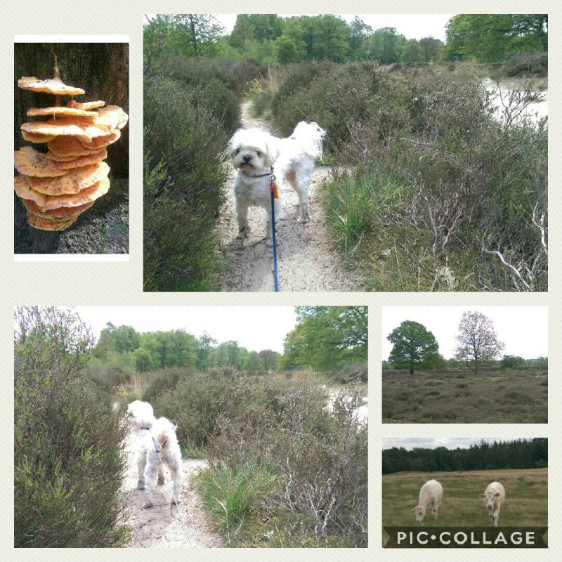 De wandeling van 8 km startte bij de parkeerplaats bij Koffie- & Eethuis De Kaleberg en ging door het bos, langs uitkijktoren “Belvedère" uit 1893 en door een landelijke omgeving. Gelukkig beklommen we de uitkijktoren niet, dat is een flinke klim voor zo’n klein hondje als ik met korte pootjes. De Kaleberg is 46,5 m hoog en de Lochemseberg 49,2 m hoog dus het was wel ff klimmen naar de top. Onderweg kreeg ik last van mijn achter pootje. Er werd na gekeken, schoon gespoeld met water, het haar werd geknipt en mijn poot werd schoongemaakt. Thuis aangekomen werd mijn pootje in het soda water gezet, want ik bleef likken aan mijn pootje. Mijn baasje zei dat ze het nog ff aankeek en anders zou ze de dierenarts bellen voor een afspraak. Jammer dat ik mijn baasje niet kan vertellen wat ik voel.