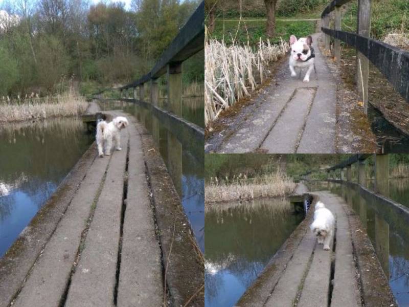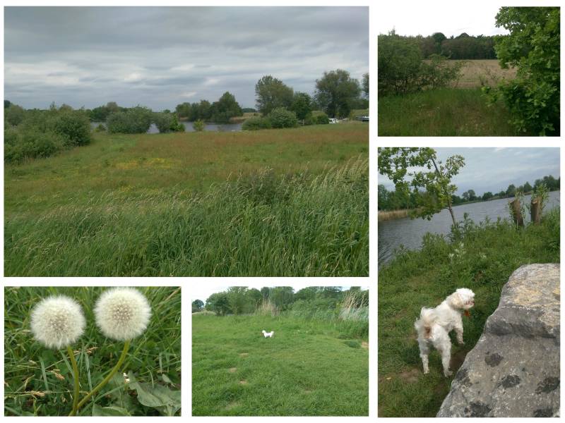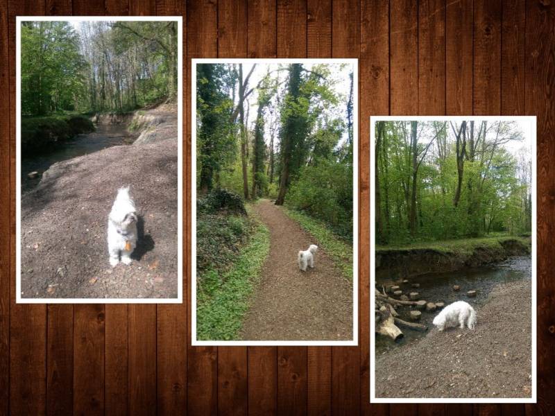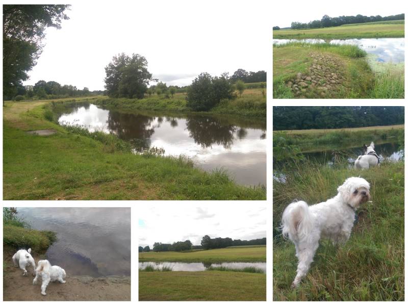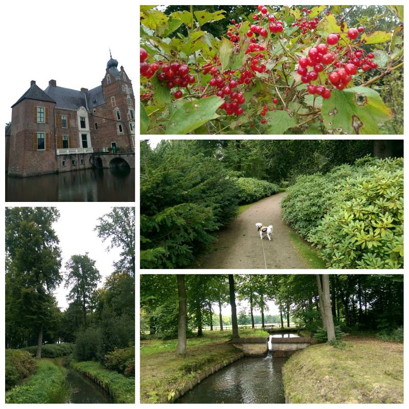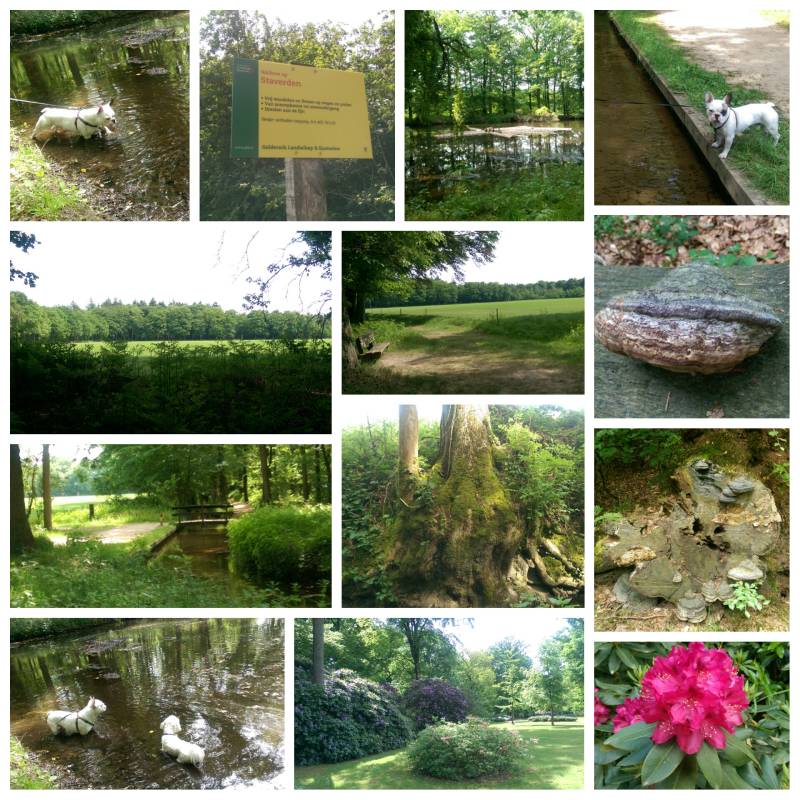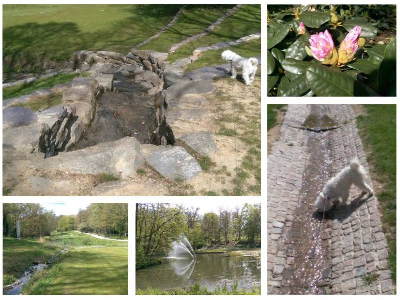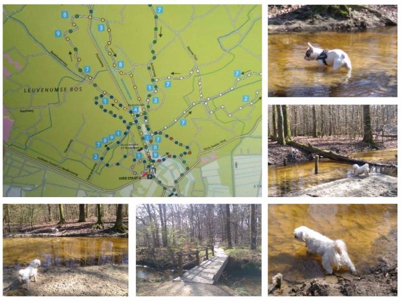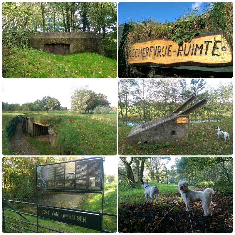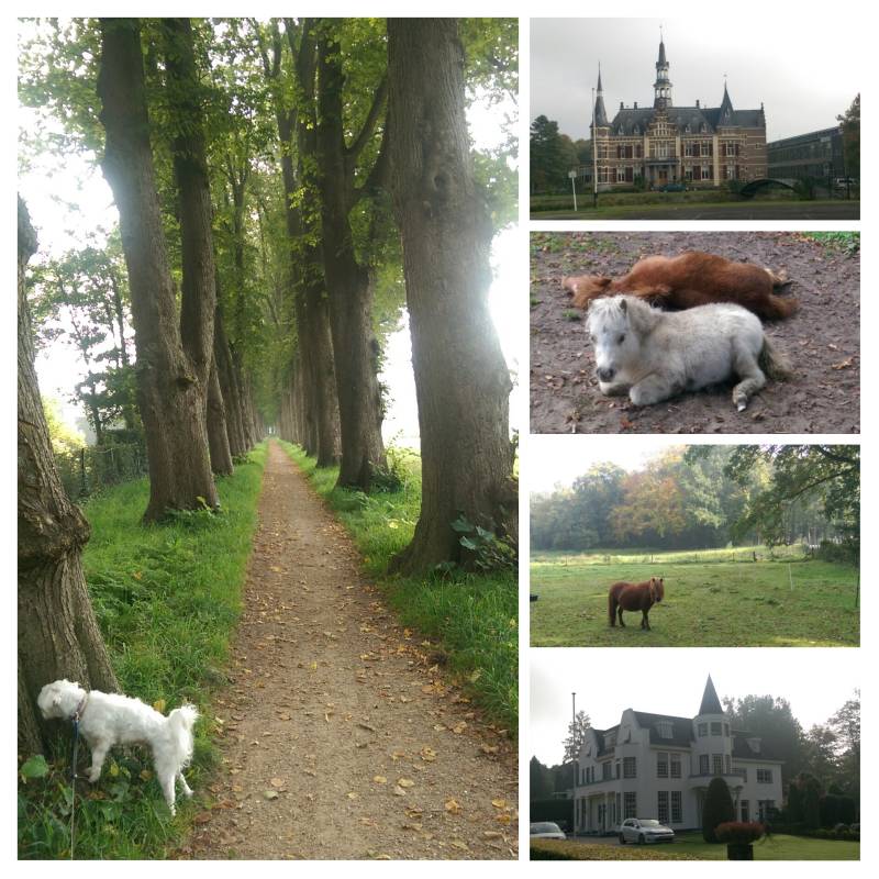 In het park wandelden we langs verschillende waterpartijen, enkele bunkers en een landhuis. Er was dus ook veel te zien, te snuffelen, te ruiken en te plassen.