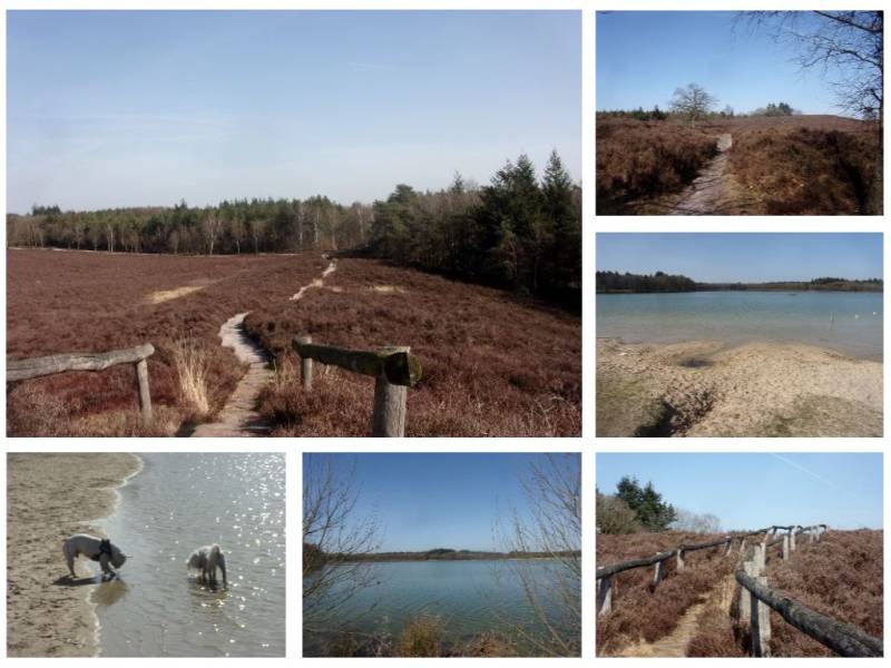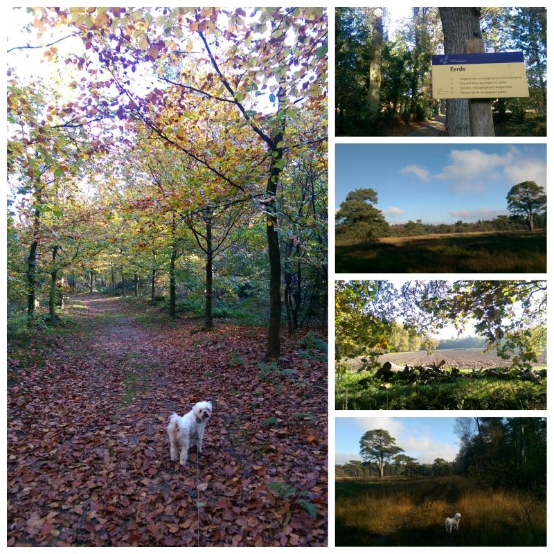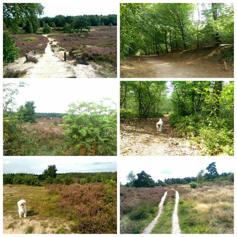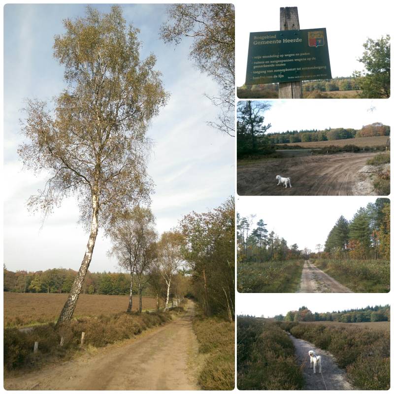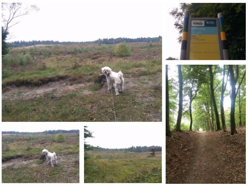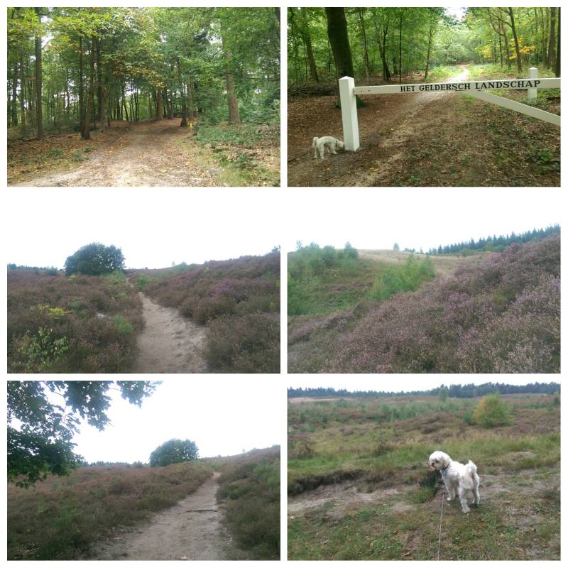 De auto werd geparkeerd bij Restaurant de Gezelligheid. Het restaurant ligt aan de rand van het Nationaal Park de Utrechtse Heuvelrug. Het startpunt van deze wandelroute van 7,5 kilometer ligt aan de rand van de Leusderheide. Een groot deel van dit heidegebied is niet toegankelijk, omdat het wordt gebruikt als oefenterrein door militairen. Militairen oefenen er in het rijden met zware voertuigen, ook wordt er gebruikgemaakt van pyrotechnische middelen zoals losse patronen, seinpatronen, struikeldraadlichtseinen, kanonnabootsers en rook- en traangasgranaten. De randen van het gebied zijn echter wel toegankelijk voor fietsers en wandelaars. De heidevelden en stuifzandvlakten zijn hier ontstaan door overbegrazing. Boeren lieten hun vee hier namelijk veelvuldig grazen. Zo verdween de begroeiing hier beetje bij beetje met een prachtig open gebied als resultaat. Honden mogen hier helaas niet los lopen, dus Bolle en ik moesten de hele route aan de riem blijven. Na de wandeling lekker vlees van de gril mee eten maakte dit wel weer goed!