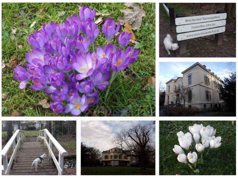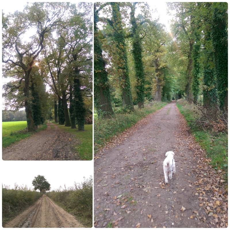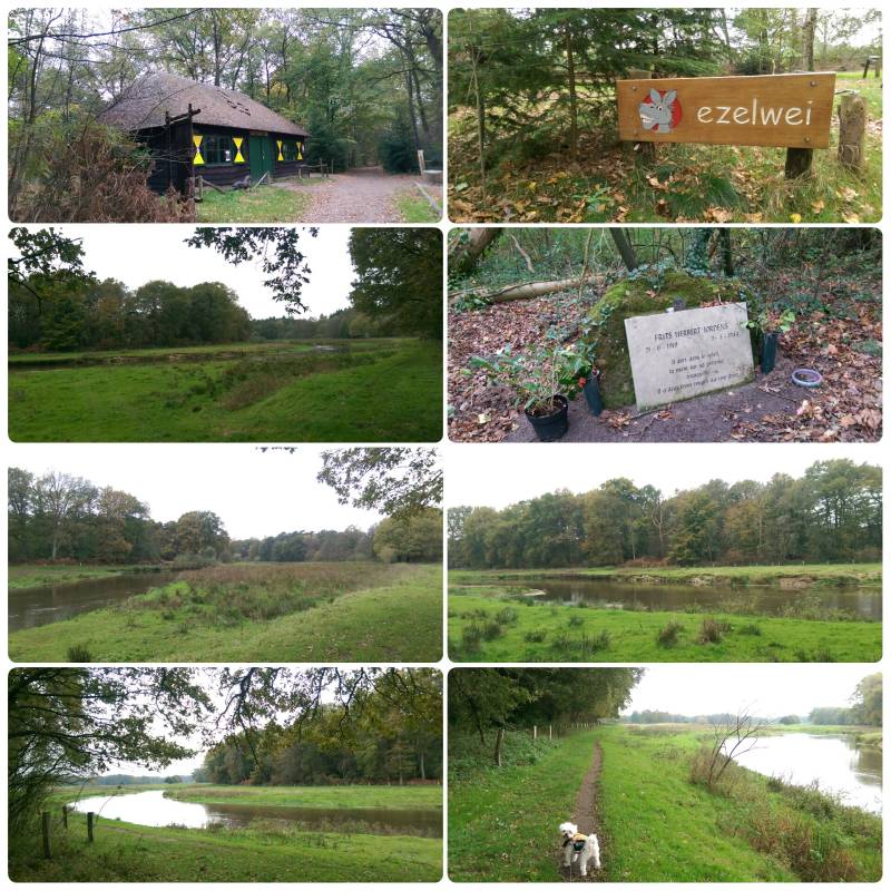 Op weg naar de woning van Bolles baasje zijn we nog even wezen wandelen over de landgoederen Rhijnauwen en Amelisweerd. Deze landgoederen liggen aan de oostkant van Utrecht, tussen Utrecht en Bunnik in. Ze zijn tezamen ongeveer 300 hectare groot en bestaan uit bos, weide, akkers en boomgaarden. Zo kon ik mooi ff mijn pootjes strekken, want het was best wel een lange zit in de winkelwagen geweest in de dierenwinkel.