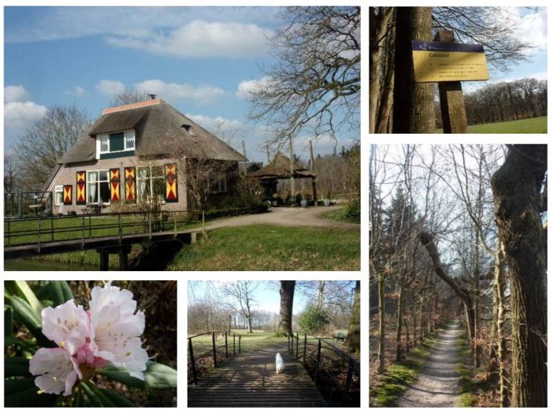 't Stroink is een parkachtig natuurgebied met weiden, bosranden, lanen, paden en een vlonderpad over de natte delen. Op Landgoed Stroink (ook wel Stroinksbos of 't Stroink genoemd) mogen honden het hele jaar los op de speciaal daarvoor aangewezen loslooproute (4 km). De route wordt gemarkeerd door bordjes met een hondenpootje erop. In de rest van het gebied moeten honden aan de lijn. We volgenden hier een paaltjes route, maar zoals gewoonlijk raakten onze baasjes de paaltjes kwijt. Nee, speurhonden euh speur mensen zijn het niet. Dat kunnen ze beter aan mij en Bolle overlaten. Ook kwamen we regelmatig een stromend beekje tegen, waaruit Bolle water dronk. Ik drink het liefst water uit een drinkbak.