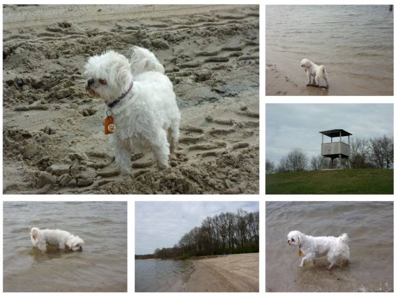 Vervolgens reden we met de auto naar de Milingerplas in de wijk Stadshagen. De plas is ontstaan na zandwinning in de jaren 1970. Tegenwoordig kan er ook worden gezwommen en is er een strandpaviljoen. De auto werd geparkeerd bij het haventje en zo liepen we rondom de plas. Er waaide een koude wind, maar als ik hard liep of rende, dan werd ik vanzelf wel weer warm. Daarbij had ik ook een winterjas aan die me warm hield. Die gekke bolle ging zelfs het ijskoude water in. Brrrr, mij niet gezien hoor. Samen met Bolle over het strand gerend. Die Bolle is best nog wel snel, kan hem niet bijhouden. Na ongeveer 45 min. wandelen kwamen we weer bij de auto aan en brachten we nog een bezoekje aan de Intratuin. Ik werd dit keer niet in de winkel wagen rond gereden, maar dat gaf niet. Kan ik lekker snuffelen en tegen de plantjes aan plassen in de winkel. Die moeten toch ook gemarkeerd worden en water krijgen?