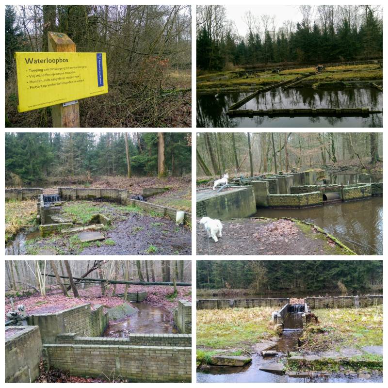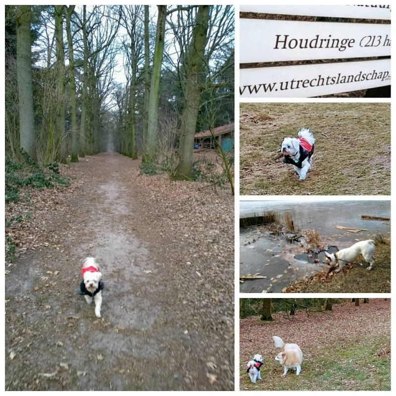 Het landgoed werd gesticht door de Oranje Bond van Orde, opgericht in 1893. Met de bouw van woningen, werkverschaffingsprojecten en heide ontginningen zette deze organisatie zich in voor de minder bedeelden. Je ziet hier veel lanen met Amerikaanse eik, die zijn vanaf 1825 op grote schaal aangeplant. Ook kwamen we aan de voet van de Kooiberg een smeltwaterdal tegen, ontstaan door smeltend sneeuw. De route moesten we onderweg aanpassen ivm afgesloten wegen door de storm van afgelopen keer. Mijn baasje is niet zo lenig, dus dan valt het Limbo dansen onder de boomstronken ook niet mee. Bolle en ik daar in tegen zijn niet zo groot, dus konden mooi onder de boomstronken door lopen. Bij de hoge boomstronken, werd ik erover heen getild. Kan wel hoog springen, maar niet zo hoog hoor!