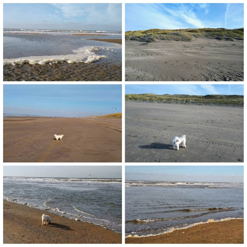 We wandelden eerst een heel stuk door het bos voordat we door de duinen naar het strand konden wandelen. Op het strand hielden we pauze om wat te drinken en eten. Ik kreeg wat hondensnoepjes met een stukje brood met kaas mee. Doordat mijn snuit onder de zand zat, kon ik mijn bek even met schoon water spoelen in het drinkbakje. Na de lunch rende ik lekker over het strand en speelde onderweg met soortgenoten. We kwamen ook mijn favoriete hondenras tegen: de Duitse Herder. Het is dat ik inmiddels weer aan de riem zat (we verlieten het strand), anders had ik die rakker laten weten wie de baas is. Ook al is hij groter dan mij, ik kan hem makkelijk aan! Sorry, ik heb nu eenmaal een hekel aan dit soort (grote) honden. Ok, grote honden vind ik zo wie zo vaak niet leuk….alhoewel de Labradoodle honden vond ik wel erg leuk die we onderweg tegen kwamen. Dat zijn kruisingen tussen Labradors en Poedels.