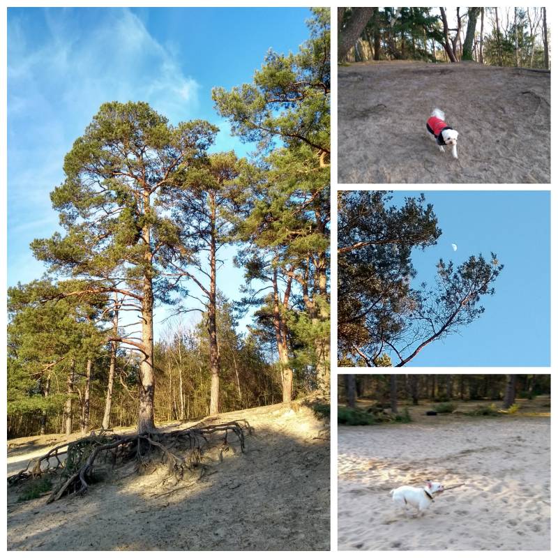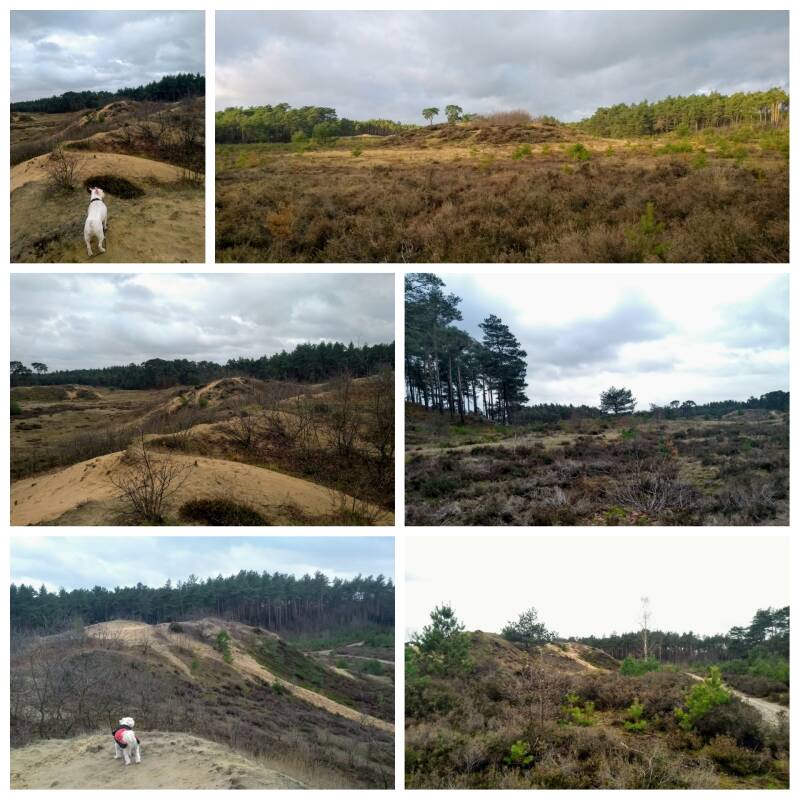 Mijn baasje zocht na een korte route in de buurt van Bolles woning. Ze koos voor een wandeling in Soest die startte in de buurt van Brasserie de Lange Duinen. Natuurpad de Lange Duinen in Soest Zuid (blauwe paal route), voert je 5 kilometer rond het grootste stuifzandgebied van de provincie Utrecht.