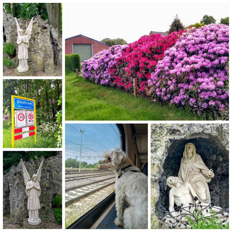 Toen we de route uit hadden gelopen, was het nog bijna een half uur wachten op de bus terug naar station Ommen. Mijn baasje had geen zin om hier op te wachten, dus we zijn wandelend richting station gegaan. Mijn baasje koos voor een landelijke omgeving terug, dus we wandelden veel over zand,- en grindpaden. Vanaf bushalte “de Steile Oever” was het een uur terug wandelen naar het station en dat te bedenken dat het met de bus circa 4 minuten rijden is…. Toen we op station Ommen arriveerden, stond de gps teller inmiddels op 9 kilometer, maar we konden wel gelijk weer de trein naar Zwolle in stappen.