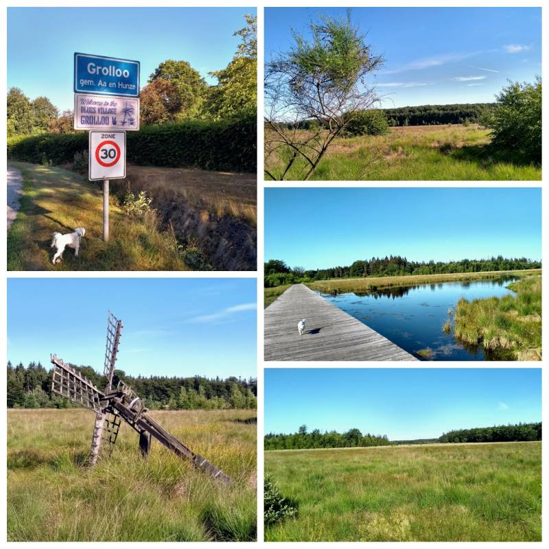Bolles baasje parkeerde de auto bij het bezoekerscentrum in Ruinen. Mijn baasje en ik mochten ook weer mee wandelen. Vanaf het bezoekerscentrum maakten we een wandeling door het Nationaal Park Dwingelerveld, in Zuidwest Drenthe. Nationaal Park Dwingelderveld is het grootste natte heidegebied van West-Europa. Natte laagtes – slenken genoemd – en hoge zandruggen wisselen elkaar af in het uitgestrekte Dwingelderveld. Je vindt er heide, bos, jeneverbesbosjes, stuifzand en ruim veertig vennen. Een deel van die vennen is ontstaan in de ijstijd, andere zijn het resultaat van veenafgravingen. Alle drie de Nederlandse slangensoorten – adder, gladde slang en ringslang – leven op het Dwingelderveld. Natuurmonumenten kocht in 1930 het eerste stuk van het Dwingelderveld om zo een voorbeeld van het oud-Drentse landschap veilig te stellen. In de hele provincie gingen heidevelden verloren door ontginningen. De eerste aankoop betrof een gebied van 700 hectare, het nationaal park heeft nu een oppervlakte van 3.700 hectare. Daarvan heeft Natuurmonumenten bijna de helft in eigendom.
