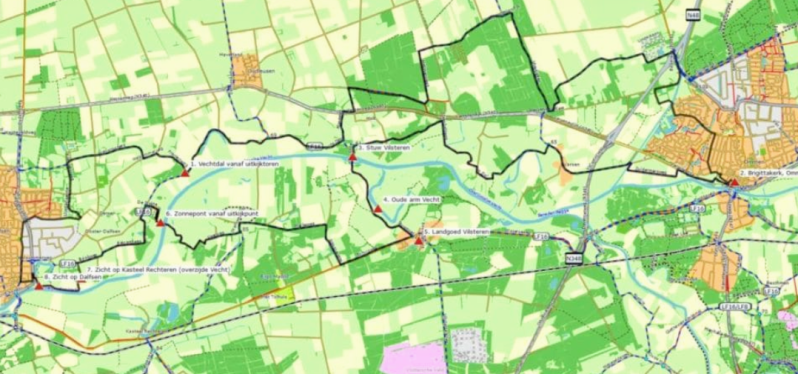 Deze prachtige route loopt over het heidegebied de Duvelskuul, maar ook door het landgoed Bleijenbeek met Kasteel Ruïne, golfbaan en het Poaterskapel.
