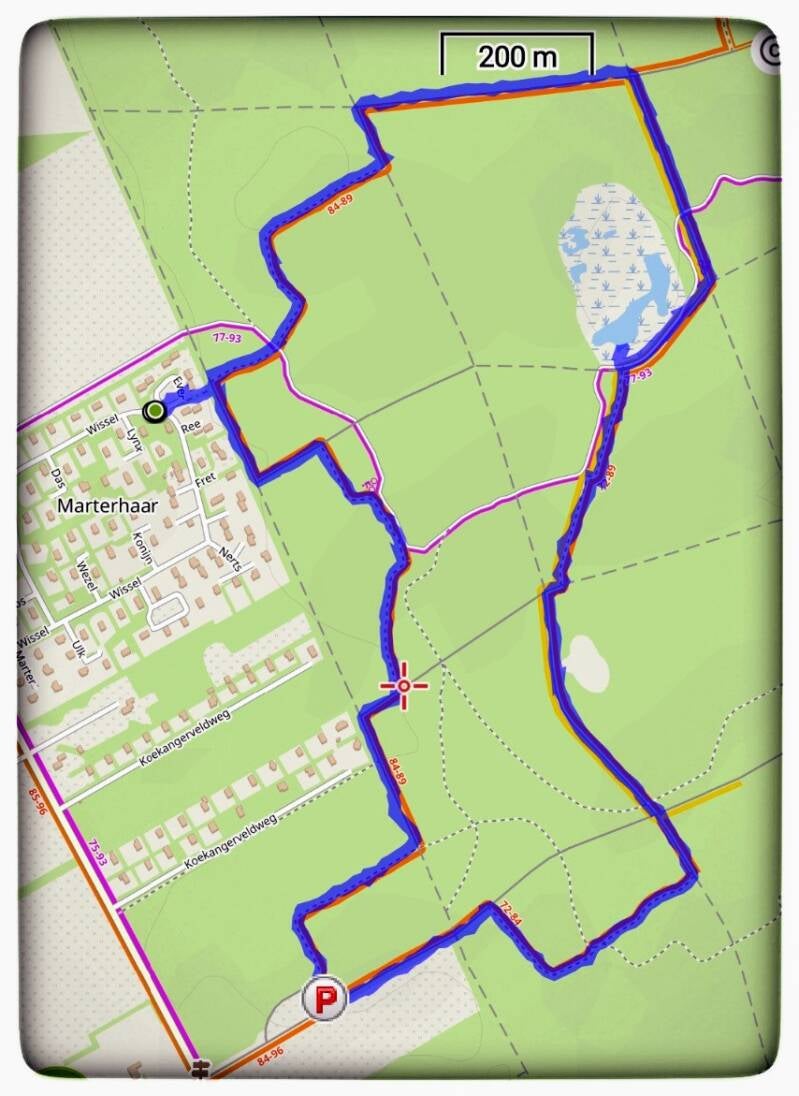 Gewandeld in de provincie Drenthe vanaf het plaatsje Marterhaar. Vanaf hier wandelden we al snel het bos in, waar we de oranje gemarkeerde paaltjes wandel route van circa 4,5 kilometer volgden. Een leuke en afwisselende route.