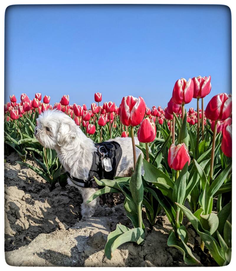 We zijn niet richting de zandverstuiving geweest, dat gaat ook lastig met de honden buggy.