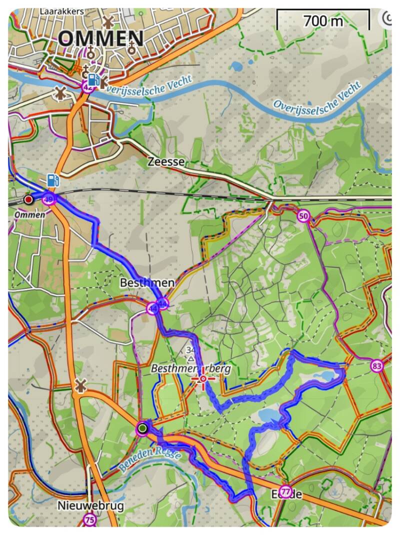 Vanaf de parkeerplaats De Steile Oever te Ommen de blauw gemarkeerde paaltjes route gewandeld.