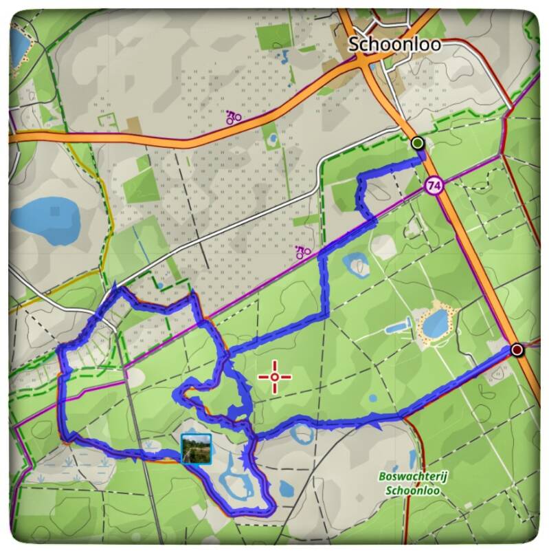 De auto parkeerden we vanmorgen op de parkeerplaats nabij Ruinerweg 12 te Echten (Drenthe). Hier zijn verschillende paaltjes routes te volgen. Wij wandelden onze eigen route van circa 7 kilometer door boswachterij Ruinen ( circa 1149 ha).