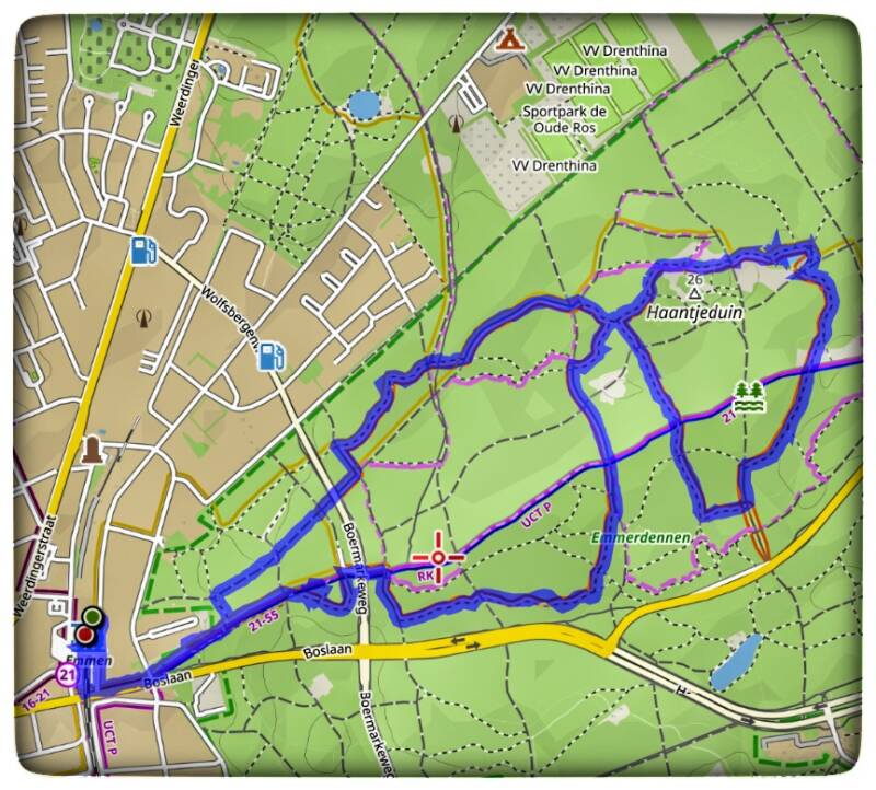 De Emmerduinen ligt vlak bij station Emmen (Drenthe). De wandeling van bijna 6,5 kilometer ging oa langs hunnebed D45, langs een grafheuvel, door het Haantjeduin en een klein stukje over het kabouter pad.