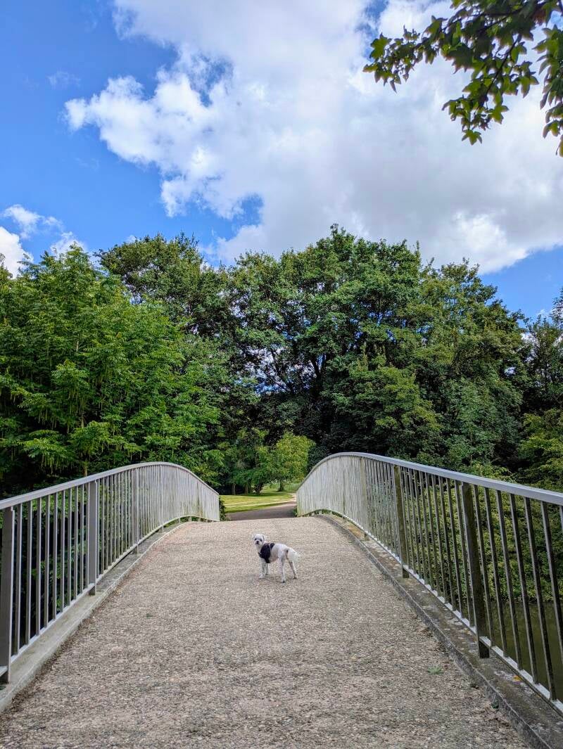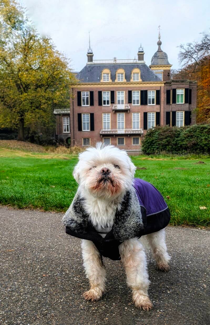 Honden zijn in het park aangelijnd toegestaan, maar niet welkom in het kasteel.