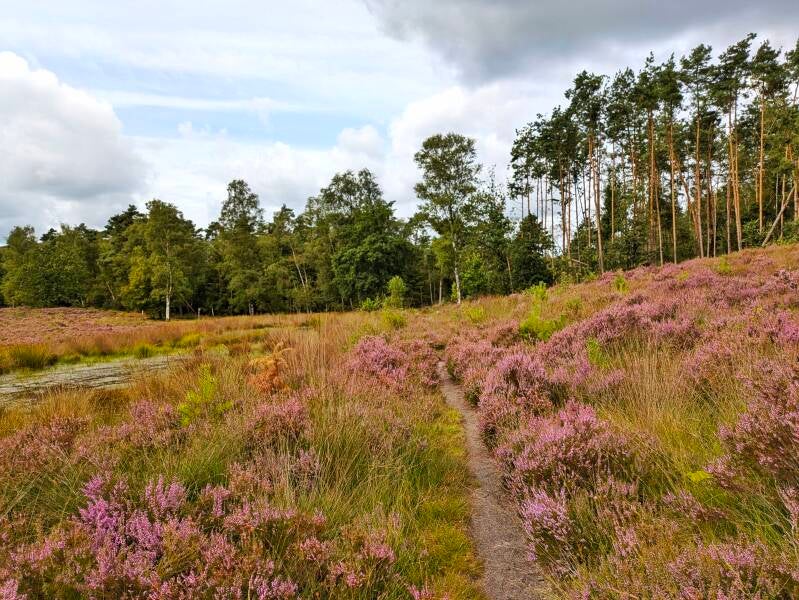 Een wandeling van 4,5 km gemaakt over de Zuiderheide in het Goois Natuurreservaat te Laren.
