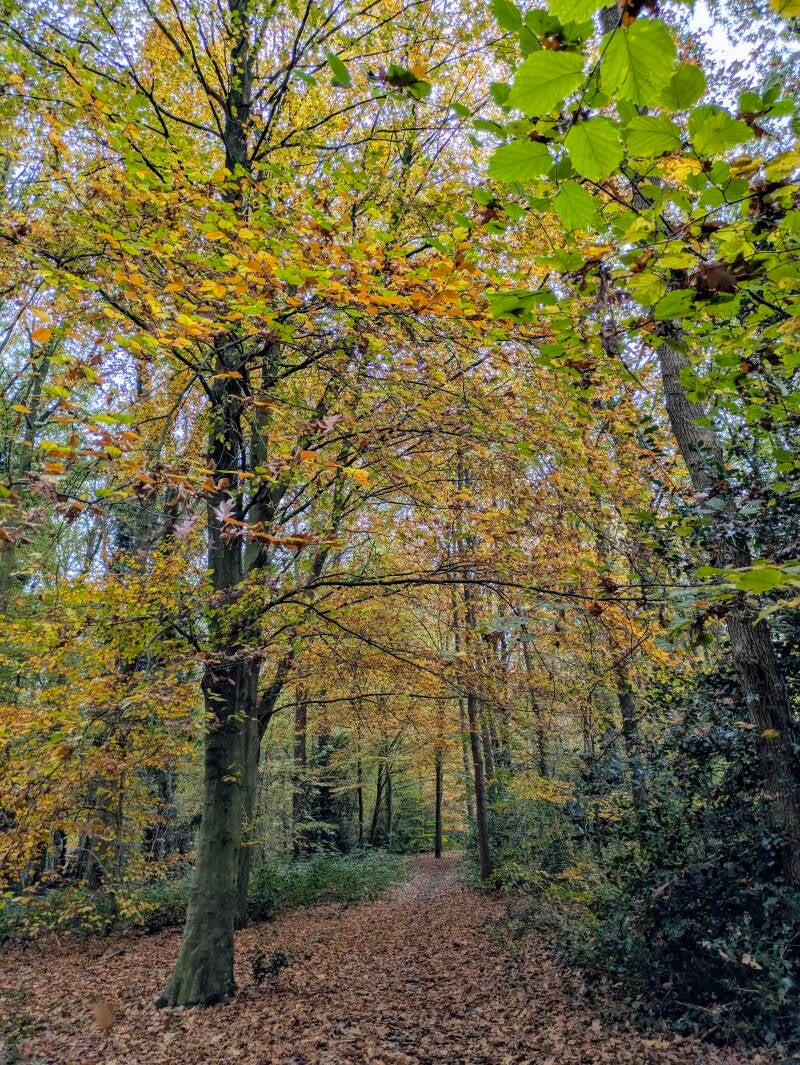 Eind van de middag toch nog even 2,5 kilometer door het Panbos te Zeist gewandeld.