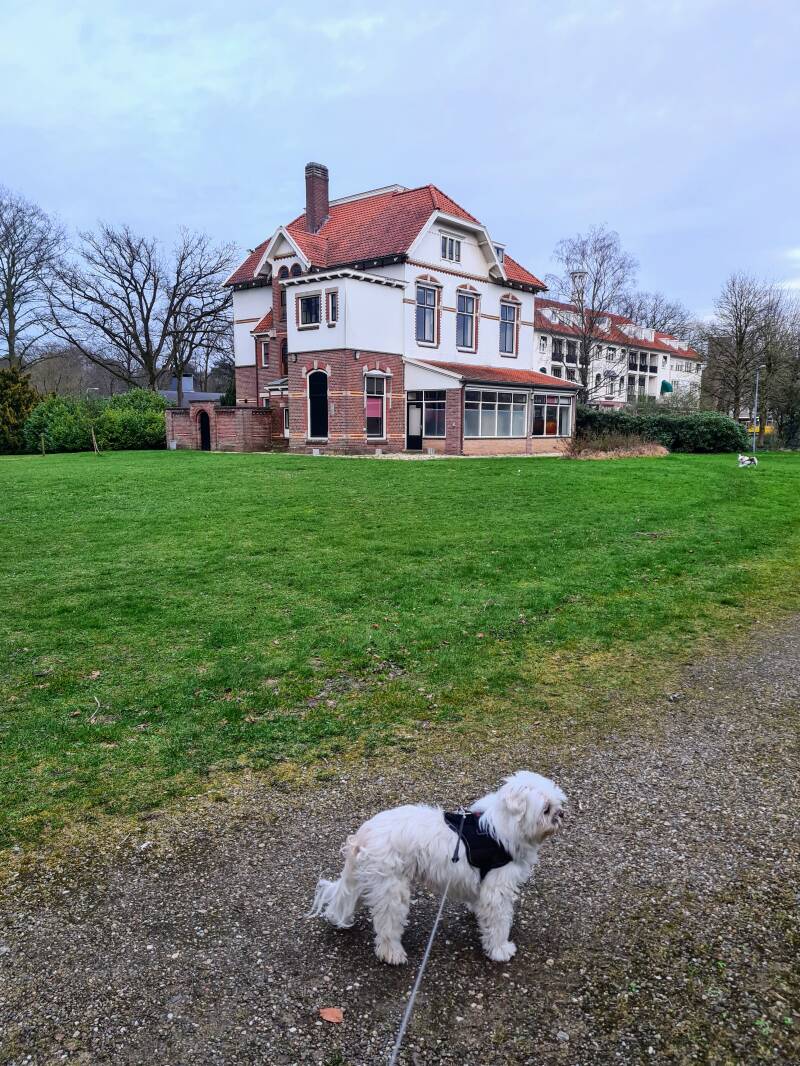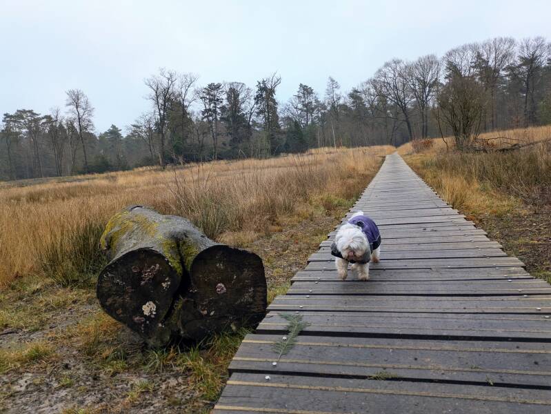 Rondom Wijkboerderij de Klooienberg te Zwolle gewandeld. Een klein rondje van nog geen 2 km, maar wel een leuk rondje oa over het vlonderpad en over het erf van de boerderij. Honden zijn aangeleind toegestaan op het terrein ondanks de loslopende kippen op het erf.
