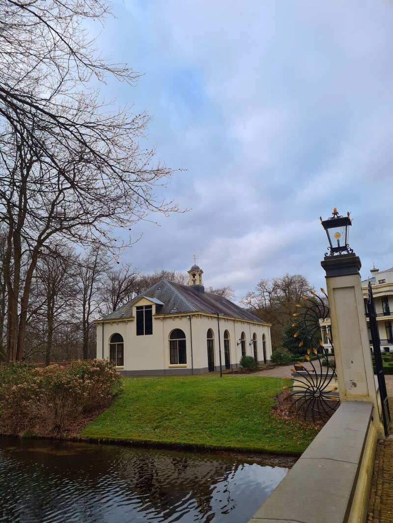 Gewandeld door het Hydepark in Doorn (provincie Utrecht). Het mooie sprookjesachtige gebouw is Oranjerie Hydepark.