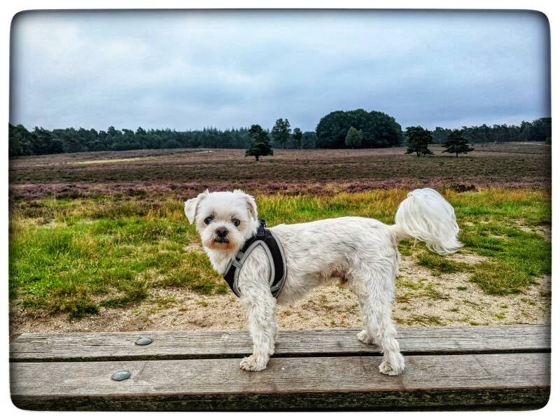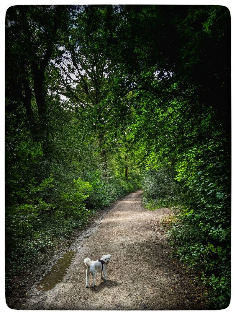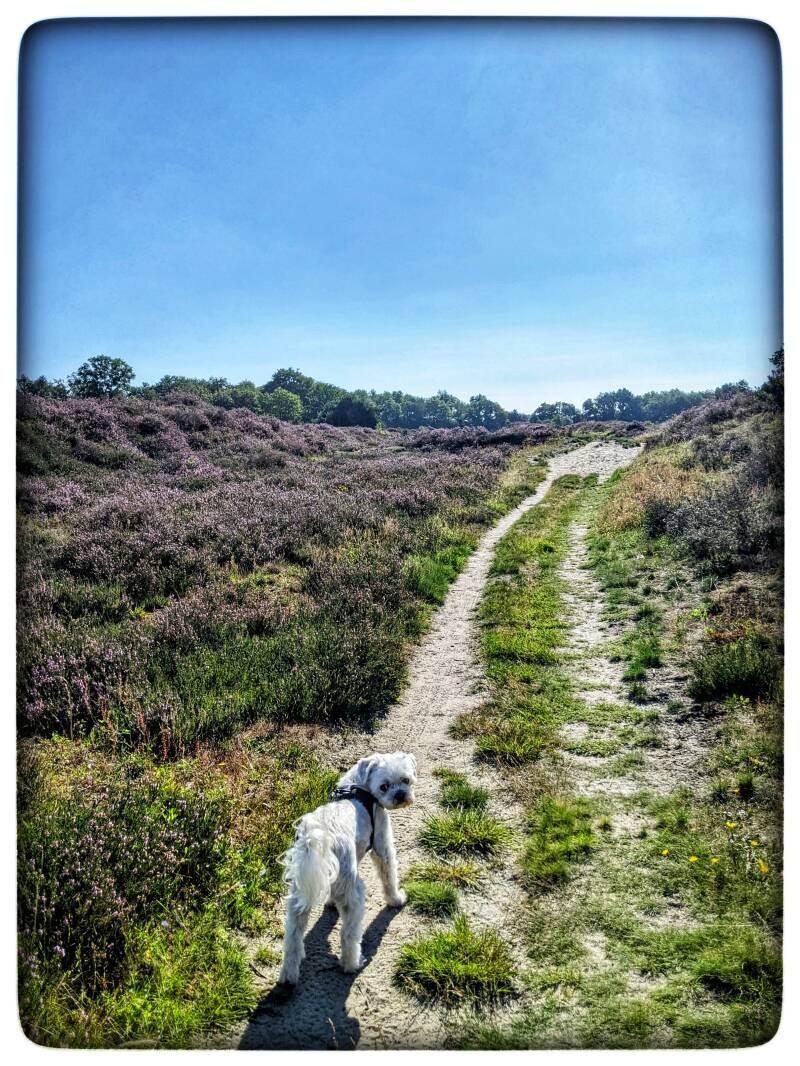Aan de wandel bij natuurreservaat de Takkenhoogte (provincie Drenthe) samen met Bolle & Luna.
